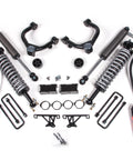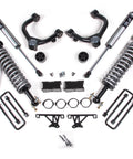 Up front the lift kit includes FOX 2.5 Performance Elite Series remote reservoir coil-over shocks and heavy duty tubular upper control arms for increased strength. In the rear this kit utilizes fabricated steel lift blocks, longer u-bolts and a complementary set of FOX 2.0 Performance shocks for the smoothest ride.