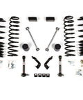 The lift kit includes front and rear BDS Pro-Ride Coil Springs, bump stop extensions, front lower control arm cam locks, JKS quicker disconnects to unlock the front suspension's potential to flex while maintaining quiet on road operation, rear sway bar links, and your choice of specially tuned NX2 nitro series gas shocks or FOX 2.0 IFP performance series gas shocks to offer improved damper performance.