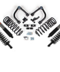Up front the lift kit includes FOX 3.0 Internal Bypass Factory Race Coilovers with DSC remote reservoirs, heavy duty tubular upper control arms for increased strength, BDS heavy duty diff. drop brackets as well as solid aluminum sway bar drop blocks. In the rear this kit utilizes 1- 3/4" BDS heavy duty coil springs and a set of FOX 3.0 Factory Race shocks with DSC remote reservoirs for ultimate adjustability that lets you dial in for the smoothest ride possible.