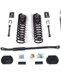 Up front the lift kit includes diesel-specific Pro-Ride coil springs, high strength 1-3/8 inch solid steel track bar for steering correction, sway bar links, and precision tuned NX2 or FOX 2.0 nitrogen charged shocks.