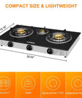 - Portable & Mobile Design - Gas stove burner ideal for camping trips, gatherings, or well-ventilated small kitchens. Product dimension(W×L×H): 28.5×15.2×5.1"