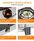 - Effortless Cleaning - Portable gas burner is made of tempered glass, non-toxic, high-temperature resistance, and wear-resistant insulation. Easy to remove pot support and drip pan to clean