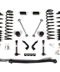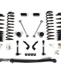 The lift kit includes front and rear BDS Pro-Ride Coil Springs, a heavy duty adjustable front track bar is utilized to recenter the front axle, bump stop extensions, front lower control arm cam locks, JKS quicker disconnects to unlock the front suspension's potential to flex while maintaining quiet on road operation, rear sway bar links, and your choice of specially tuned NX2 nitro series gas shocks or FOX 2.0 IFP performance series gas shocks to offer improved damper performance.