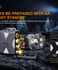The Fenix HP16R is a highly capable rechargeable outdoor headlamp with 1250 lumens of max output. Powered by a single Fenix ARB-LP3000 Li-polymer battery pack or four AA batteries, the headlamp features a separate battery case on its rear that is outfitted with a USB Type-C charging port. With a maximum runtime of 300 hours on the lowest setting and beam visibility of 853 feet, the HP16R is ideal for activities such as mountaineering, searching, and hiking.