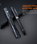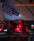 The LD22 V2.0 Compact EDC Flashlight by Fenix features an 800-lumen output and dual switch for convenient use. This iteration has an upgraded aluminum body and HAIII hard-anodized anti-abrasive finish, plus pocket clip slots for positioning. It runs on an ARB-L14-1600U2 battery for 800 lumens, or two AA batteries for 350 lumens. IP68 rated for waterproof protection, this flashlight fits easily in pockets, toolboxes, glove boxes, or go-bags for light on the go.