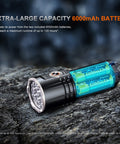 Control brightness smoothly with stepless regulation and an electronic rotary toggle and switch, and rely on the intelligent proximity sensor, lockout function, and steel glass-breaking tips for safe, smart operation. The two 6000mAh batteries support USB-C fast charging (recognizing PD3.0/PD2.0 protocols and more) and even allow you to charge other devices on the go.