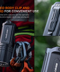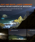 The Fenix LR36R is a powerhouse flashlight built for extreme performance and versatility. Its white laser light source delivers an impressive 4134-foot beam distance with a blinding 10,000-lumen output, making it ideal for search and rescue or tactical missions. The OLED smart display keeps you informed with battery and runtime updates, while the toggle switch and stepless brightness regulation ensure effortless control.