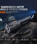 Powered by two high-capacity 21700 batteries for up to 10 days of runtime, this flashlight is as durable as it is powerful, with an IP68 waterproof rating, 1.5-meter impact resistance, and an intelligent proximity sensor to prevent overheating. Versatile modes including floodlight, laser, strobe, and SOS, plus a Type-C charging port and ergonomic one-handed grip, make the LR36R a reliable companion for any demanding adventure.