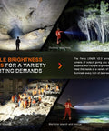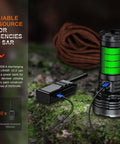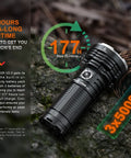 The LR40R V2 boasts 15,000 lumens and 196,464 candela output providing a useful range of over half a mile (900m). Comfortably controlled with one hand, this 6.89" A6061-T6 aluminum device offers four lighting modes, adjustable brightness, and an internal 5000mAh battery that powers the impressive output as well as an ultra-long 177-hour run time in eco spot mode (10 lumens). Perfect for extreme conditions, an IP68 rating, a temp range of -35° to 45°C, plus dual-usage in emergencies as a power bank, this searchlight is essential for any outdoor worker, search and rescue team member, or explorer.