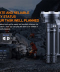 Fenix LR80R is an extraordinary, high-powered searchlight, yielding an incredible 18,000 lumens and 318,000 candela for visibility up to 3,700 ft (1,130 meters). This flashlight is equipped with a 12,000 mAh Li-ion battery and a quick-charging USB Type-C port. Its dual switch design reduces operation time to access high and low brightness settings. Battery capacity warning and heat-regulating downshifting sensors guarantee safety when used for close-range lighting. The LR80R also features a handle and tripod socket. The LR80R by Fenix is perfect for outdoor industrial work, powerline work, search and rescue, farmers, outdoor photography and many other uses.