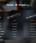 Fenix PD36R V2 Compact Rechargeable Tactical Flashlight - 1700 Lumens