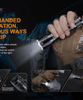 The Fenix TK16 V2.0 Tactical Flashlight is capable of producing 3100 lumens and 36,100 candela with the single included 21700 battery, which is USB Type-C rechargeable. A new addition to this model is a pulse-frequency transmission system for increased anti-interference performance. The TK16 V2.0 versatile features include a dual tail switch for quick toggle and an instant strobe mode. With its compact size and impressive light power, we recommend the TK16 V2.0 for any tactical need.
