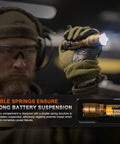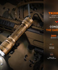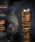 The Fenix TK20R UE Tactical Flashlight is an essential tool, offering a maximum output of 2800 lumens and 53,880 candela that ensures a reliable nighttime search and defense. With two modes - Tactical and Duty - and the ability to memorize and recall the last output and Strobe, it's easy to operate with just one hand using the new FlexiSensa control toggle. The battery compartment features a double spring design that absorbs external impacts and ensures uninterrupted power while the sleek design is available in four colors - Desert Camo, Tan, Tropic, and City Gray.