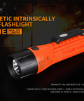 The Fenix WF11E is an IECEx, ATEX and SGS certified intrinsically safe flashlight, suited to hazardous areas such as Zone 0, Zone 1 and Zone 2 with explosive gas, and Zone 20, Zone 21 and Zone 22 with combustible dust. (Not suitable for open pit areas.) Offering 200 lumens max brightness, the WF11E is powered by three included AA batteries, features a magnetic tail and body clip, anti-static plastic casing and 1m impact resistance, and is IP67 rated waterproof and dust proof. (Not suitable for open pit areas.)