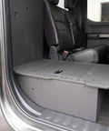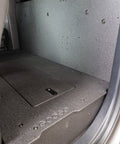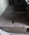 The Ford F150 second row seat deletes for the SuperCab are designed for you to easily remove your rear seats and create a flat and secure platform to secure your gear. The platform includes hatches that allow access to the factory storage space below the rear seats. In addition to the base plate, you also get a back wall replacement that is secured to the base plate and the factory anchor points in the back wall.