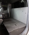 For the design, we utilized our preferred design of 60/40 split. This design allows the user to add a fridge or cooler behind the passenger's seat in a front to back orientation. Keeping the 60% space wide open and usable. Fridge models that would easily fit in this space include: