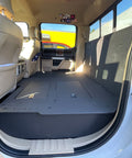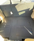 The Ford F150 Raptor Second Row Seat Deletes for the Super Crew 4 door F150 are designed for you to easily remove your rear seats and create a flat and secure platform to secure your gear to. The platform includes hatches that allow access to the factory storage space below the rear seats. In addition to the base plate, you also get a back wall replacement that is secured to the base plate and the factory anchors points in the back wall.