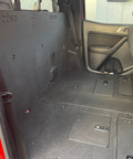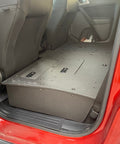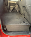 The Ford Ranger second row seat deletes for the Super Crew 4 door Ranger are designed for you to easily remove your rear seats and create a flat and secure platform for gear storage. The platform includes hatches that allow access to the factory storage space below the rear seats. In addition to the seat platform, you also get a back wall replacement that is secured to the platform, and the factory anchor points in the back wall.