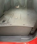 Although this is a 100% replacement, we utilized our preferred design of a 60/40 split. This design allows the user to add a fridge or cooler behind the passenger's seat in a front to back orientation, keeping the 60% space behind the driver's side wide open and usable. The image below shows a National Luna Weekender 50 fridge. Other fridge models that would easily fit in this space include: