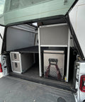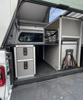 The Goose Gear Camper System Passenger Side Rear IceBox Module is the designed with a lock in and lock out fridge slide, while still having access to open the fridge while inside the camper.