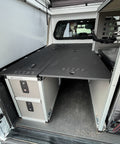 Camper Bed Plate System is required for installation. The Double Drawer Module bolts directly to the Camper Bed Plate System.