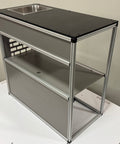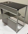 The Sink and Storage Utility Module bolts directly to the Camper 6Ft. Bed Plate System. This module is the same height as the Camper System CampKitchen or IceBox, providing a counter space.
