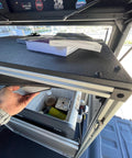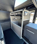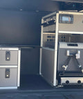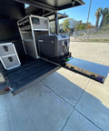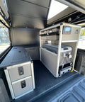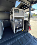 The Goose Gear Camper System Passenger Side Rear CampKitchen Module is the designed with a lock in and lock out fridge slide and stove slide. Designed to provide access to open the fridge while inside the camper.