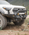 Introducing our TRUE hybrid prerunner style front bumper for the (2024+) 4th gen Toyota Tacoma. Our version of a Hybrid Bumper incorporates Steel AND Aluminum, not just one or the other. The Hi-Lite gets its name from its aggressive, high-clearance design and its ultra lightweight overall construction. This bumper features a full 40lb aluminum shell and a 42lb steel winch cradle for a total weight of 82lbs. (40lbs is actually removed from the OEM bumper, so you're only adding around 45lbs to the front of your truck with this bumper). We've specially designed this bumper to give you strength where you need it most while saving weight and eliminating rust everywhere else.