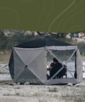 Wild Land Six-Sided Hub Screen Shelter is a portable, hexagon-shaped pop-up gazebo tent that sets up in under 60 seconds with a patented hub mechanism. Featuring durable mesh walls on all six sides, it keeps mosquitoes out while allowing airflow. The T-shaped door ensures easy access and full standing height, perfect for outdoor activities.