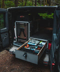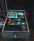 - Single Drawer Module w/ Fitted Top Plate - Driver’s Side (22-3/16”W x 10”H x 34”D) – Lockable storage with the choice of gray or black drawer face.