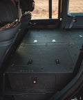 Our Ineos Grenadier module-based seat delete system not only provides much-needed storage but also features hatches with lockable compartments for secure storage. Constructed from premium Baltic birch and sprayed with our proprietary bed liner material, this system is engineered for durability and protection in the toughest conditions. For added rigidity and strength, we incorporate our MaxLite extrusion, ensuring a sturdy and reliable setup.