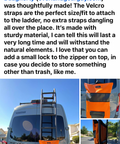 Disclaimer: Do NOT drive with bag mounted on the Outside of ladder, Flip it to the inside of the ladder. Also be careful not to overfill it with sharp heavy objects, you do not want it against the paint on the vehicle.