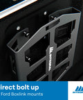 - Bolts directly to the factory, rear Ford Boxlink mounts on 2015+ Raptors, F150s, and 2017+ F250, F350, and F450