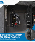 - The easiest way to quickly secure gear in your truck bed. Bolts directly to the factory tie-down anchor mounts on 2019+ RAM HD. See fitment photos and fitment section below for details.