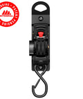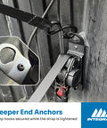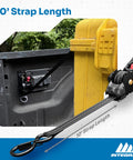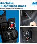 - Self-contained, retractable straps. Push the button to retract and store. 1"x10' strap.
