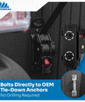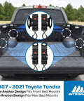 - The easiest way to quickly secure gear in your truck bed. Bolts directly to the factory tie-down anchor mounts on 2007+ Toyota Tundra. Includes all hardware needed to install.