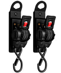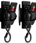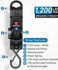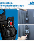 - Self-contained, retractable straps. Push the button to retract and store. 1"x10' strap.