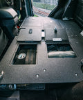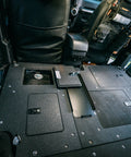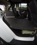 Jeep Wrangler JKU Plate System is required to install the Seat Delete Plate System. JKU Sleep Platforms connect to the rear Plate System and continue forward to just behind the front row seats(s).