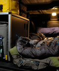 Also makes a great platform for securing your own storage or gear including dog crates, other fridge slide brands, etc.