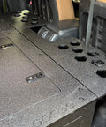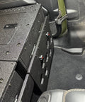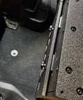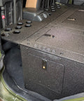 The 40% Driver Seat Delete Plate System is a bolt in replacement for the 40% drivers' side second row seat. With this platform you get three storage access doors and all necessary hardware to bolt it to the vehicle at factory anchor points without drilling, and to anchor points to attach it to whichever storage module is best for you build. This kit DOES NOT include the Jeep JLU Rear Plate System, modules or the rear seat delete bracket.