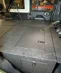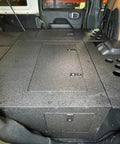 This version of the second row delete is module based which means it is a raised platform that is designed to mount to the rear of our 8" and 10" Drawer Modules, CampKitchen 2.31 and IceBox 1.31 Modules. Below the seat delete is an incredible amount of storage for all of your camping and other needs. There are access doors on both side and the top for quick and easy access regardless of what is secured on top of the delete.