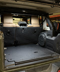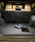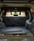 The Jeep Wrangler JLU Rear Plate System is designed and built with industrial grade plywood and coating using our propriety spray methods for superior durability and wear resistance. This Plate System allows the user to easily install various Jeep Specific modules including single and double drawer systems as well as the ever famous Icebox module and the new CampKitchen 2.3 for Jeeps. The plate system also makes a great platform for securing your own storage or gear including dog crates, other fridge slide brands, etc.