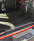 The Jeep Wrangler 392 Rear Plate System is designed and built with industrial grade plywood and coating using our propriety spray methods for superior durability and wear resistance. The 392 Rear Plate System allows for only "With Subwoofer" and "Passenger Side Access Hatch" options, since the 392 comes equipped with a Factory Subwoofer and an in-floor storage compartment only on the passenger side in the rear of the Jeep.