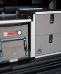 Designed and built with industrial grade plywood dovetail finished drawer boxes. They are mounted to 350# rated full-extension drawer guides for smooth operation and durable performance. The drawers are secured with a locking compression latch. We build all of our drawer modules to last, but at the least weight possible.