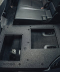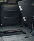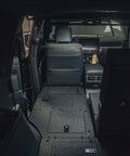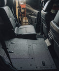 Featuring 2 hatches to access the storage space below the seat delete. Providing a secure and stable place to strap your gear to or for sleeping in your rig. The length of the rear plate with the second row deletes measures 6'-1-½" long. We also offer an optional sleep platform extension that takes the platform to a full 6'-10" long, just over 2 meters for the taller folks. You can find the optional pillow extension here.