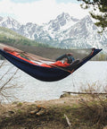 Mantis’s Dragonet™ is an integrated bugnet that zips into the hammock body from head to toe and offers complete protection fromany and all insects. Dragonet™ features built-in pockets to keep your phone, headlamp, and trail snacks close at hand, as well as a black mesh Stargazer™ panel that turns virtually transparent at night for an exceptional view of the night sky.