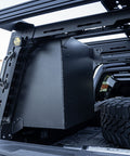 - Use both gas struts if running a rotopax/heavy accessory on outside panel