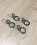 Below is the round design which features a 9/16" diameter ring for caribeners, rope etc.