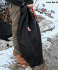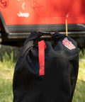 We extended the length of our bags, squared out the bottom for things to sit a little prettier. With the extended length of the bag, you can now roll it down to the desired length, bring the clasps together and badda boom! Your gear is protected from the outside elements and is ready to be stored snuggly in your rig. Or maybe your gear just got pulled out of the mud and now the bag is protecting your truck from your gear. The possibilities are almost endless.