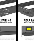 - Slotted (1/4” & 3/8”) cutouts on front/rear fairings for light mounting